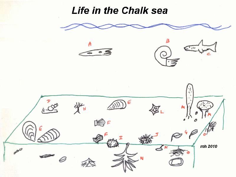 A reconstruction of life in the Chalk Sea would look something like this:-