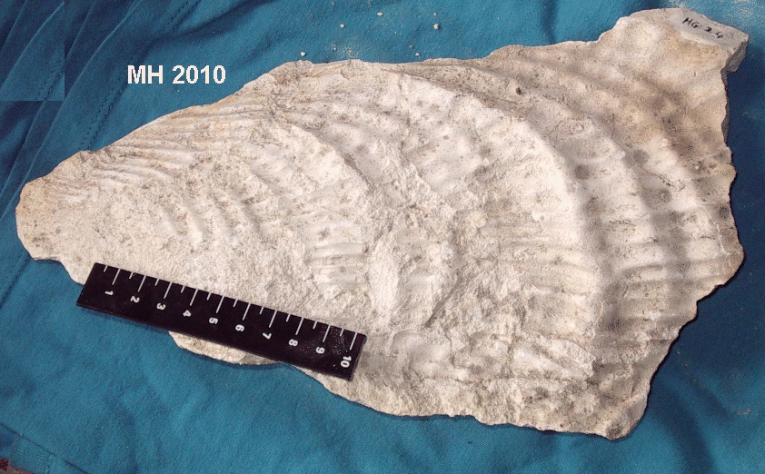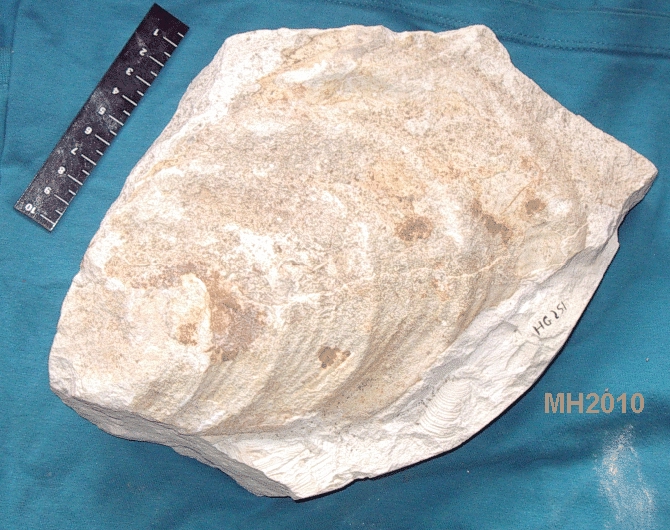 Inoceramid bivalves - these are the most common invertebrate macrofossils. They were the clams and mussels of their day. Some can be as big as a metre across. (Click on the images for pictures of the specimens used in the exhibition.)