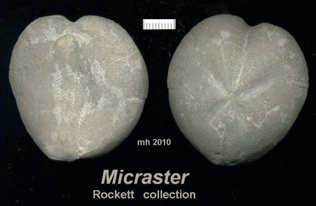 Sea urchins. The spines of the spiny cidarid sea urchins are quite common; but complete specimens are rare. Beautiful Micraster heart urchins can be found, as can the more robust Echinocorys. At some horizons a tiny sea urchin called Hagenowia can be found.