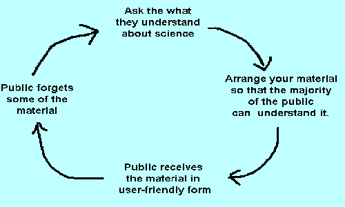 So the science is simplified to a form that the average person understands. But people are individuals not averages. So the sensible educator has to decide on a target audience and find out what they want to know. They can do this by surveying the punters.