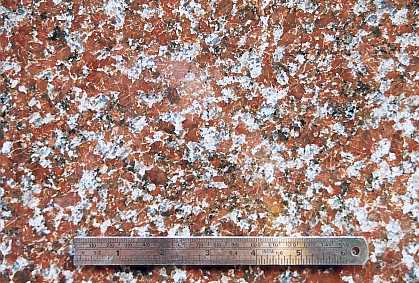 (a former bank) is made of deep red 'Vergo' granite from Sweden containing blue strained quartz at its base and Ancaster Stone with its 'streaky bacon' texture above. There are also beautiful turned pillars of the granite.