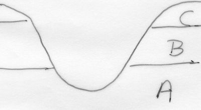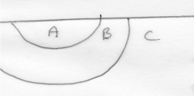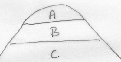it is a hill with rocks deposited in the sequence C (oldest), B and A