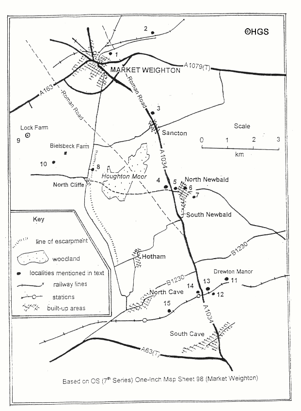 Several sites of geological interest in the Market Weighton - South Cave area which were available at the beginning of the century are sadly no more. Many were visited before their demise and the observations and recordings produced eventually came together in the form of a book, first published in 1924 and designed for the layman. The locations of the sites mentioned in this book are presented together with an interpretation of the geology once visible Thankfully one of these sites is still available; this is the site now known as Rifle Butts. Long may it last!