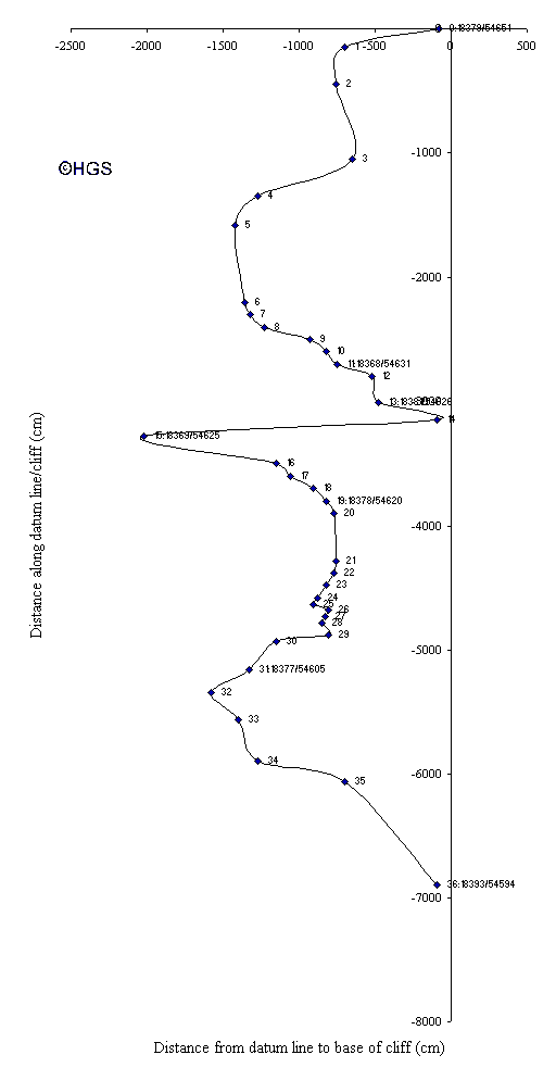 Point C of Nina's 19/7 section, ca 10 m S, TA18368 54641, 32 degs, no height because this is an eroded "headland".